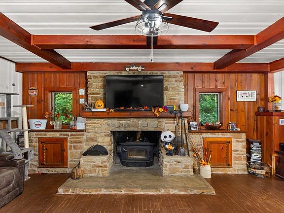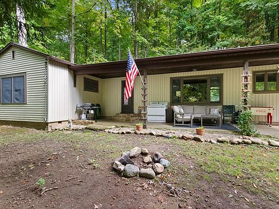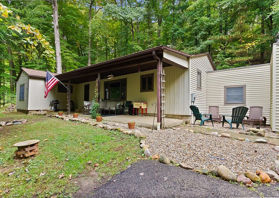Perfect getaway or vacation rental property! Beautiful stone wood burning fireplace covers the entire living room wall for cozy winter evenings. Tons of rustic charm! Enjoy quiet evenings on the covered front porch. Lots of updates including a remodeled kitchen, new light fixtures, freshly painted ceilings, and newer windows. Nice open concept floor plan. Wooded lot provides privacy! Plenty of storage space! Within minutes of State Route 13, I-71 and Snow Trails Ski Lodge! Close to Mohican State Park and Malabar Farm State Park!