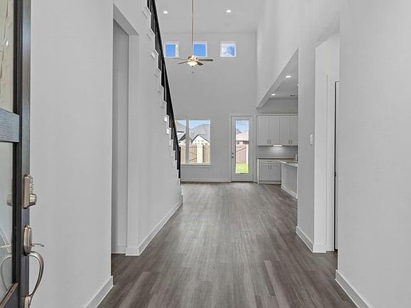 Discover the Nash floorplan by D.R. Horton—an elegant 5-bedroom, 3-bath home with two bedrooms down and smart, open-concept design throughout. The gourmet kitchen features granite countertops, stainless steel appliances, and a cozy breakfast nook that opens to a spacious family room. The downstairs primary suite includes dual walk-in closets, a soaking tub, and a separate shower, with access to a covered patio perfect for relaxing. Upstairs, enjoy a large game room and media room, ideal for entertaining. Located in the vibrant Harvest Green community, offering farm-to-table living, trails, parks, and top-rated schools. *Photos and 3D tour are for illustration only. Features may vary.