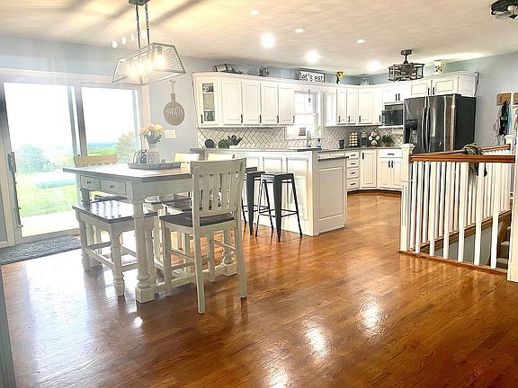 Buyers Agents Welcome. This Ranch Home with breathtaking views is move-in ready. The home has 2603 square feet of living space and sits on a 0.98 acre lot surrounded by beautiful farm land. There is a two car garage upstairs and an additional two garages downstairs There is ample storage space throughout. The home was remodeled in 2019, adding an additional 255 square foot master bedroom with walk-in closet and master bath. The home also features a new roof and gutters, new vinyl siding, and new flooring in the bedrooms and downstairs entertainment area. Additional updates include new refrigerator, microwave, wireless oven, and kitchen sink.