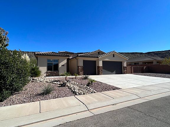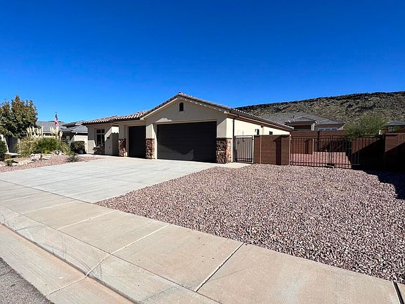 Just listed home in the desired neighborhood of Dixie Springs. Being just minutes away from Sand Hollow with no HOA. Large hidden pantry. The yard is fully fenced and finished with low maintenance. This home was built new in 2017. Agent is related to seller.