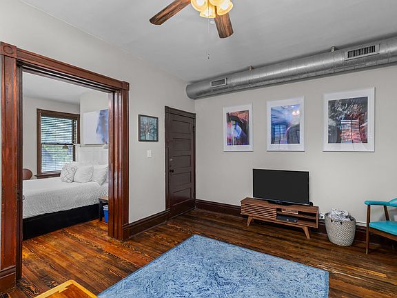 Charming historic apartment located in the beautiful Fox Park neighborhood in South St. Louis. This second floor unit boasts a spacious living room with hardwood flooring, original wood trim, tall windows, and a comfortable space to relax. The oversized bedroom is accented by the vintage fireplace with a king-sized bed including luxurious bedding, dresser, closet and great views of the historic homes on the tree-lined street. A convenient bathroom is located next to the in-unit laundry.