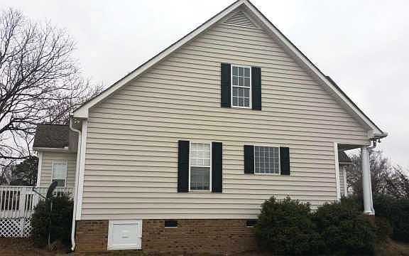 Attractive vinyl cape cod in Heatherstone Subdivision built in 2003 on .69 acres and offering 1844 finished square feet, three bedrooms, two full baths, heat pump with central air, hardwood floors, fireplace, beautiful kitchen, attached garage, covered front porch, and rear wood deck.