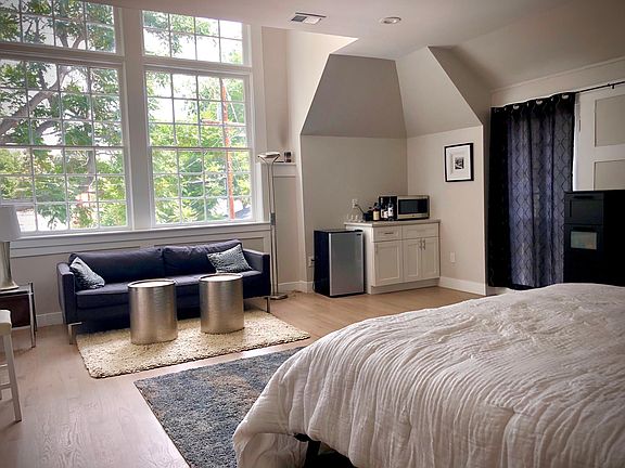 Big beautiful 2-BR 2-bath taking up entire second floor of fully remodeled historic home. High ceilings, big windows, original beams, open floor plan. A/C, W/D in unit, separate outside entrance. Shared use of backyard with lawn and grill. Furnished or unfurnished. Plenty of free un-metered street parking out front. No smoking or pets. First, last and security.
