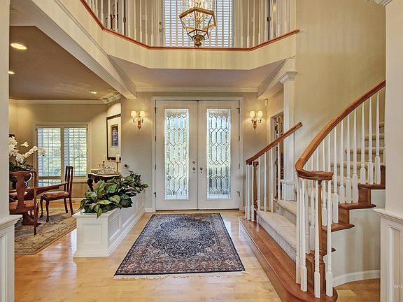 Grandeur & classic elegance greet you from the circular cobblestone driveway to the soaring entry adorned with stately columns that lead to the office featuring an intricate custom desk & display cabinetry. Formal sitting & dining rooms round out the path to the kitchen boasting custom cherry cabinetry, oversized island w/pot rack and built-in Sub Zero fridge. Cozy family room where you can embrace the warmth of a wood burning fireplace & plantation shutters. Large Primary bedroom enjoys a gas fireplace, corner soaker tub, separate tiled shower + entry to own secret garden & fountain. Up the elegant staircase, find 3 bedrooms & large bonus w/built-in bookshelves for endless hours of cuddling up w/a book, board games or watching movies. Don’t miss the laundry chute & back staircase for quick access to the kitchen. 1 acre & plenty of space to enjoy the extensive, lush landscaping & East facing backyard & patio. Come see what the Spurwing lifestyle is all about.
