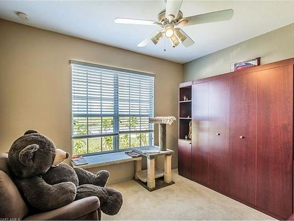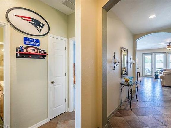 Lovely Huntington II model by Beazer on the lake, available to be your Southwest Florida piece of paradise. This 2007 built 3 bed, 2 bath, 2 car garage home in move-in ready condition will wow. Enter the screened front entry, perfect for letting the breezes blow in from the private screened back porch. The spacious foyer connects the light and airy front 2 bedrooms with great storage space, 1 guest bathroom with glass shower doors and taller vanity to the rest of the home. The inside laundry room and large 2 car garage are just beyond, set up for great storage with extra cabinets. Farther in thru the foyer, find a fabulous open floor plan with tall ceilings and great views of the backyard. The open floor plan concept has the large kitchen with Corian counters and real maple 42" cabinets, slate backsplash, and closet pantry connected to a wonderful breakfast nook. The great room is open and spacious, with the diagonal tiles making it feel even larger.