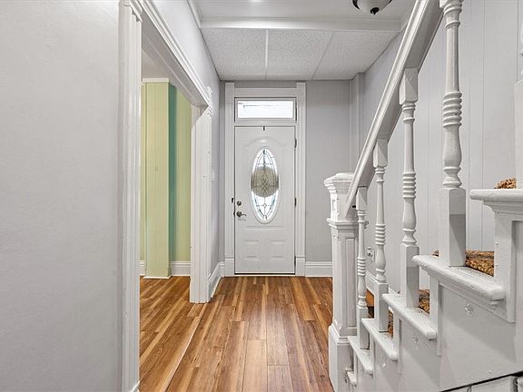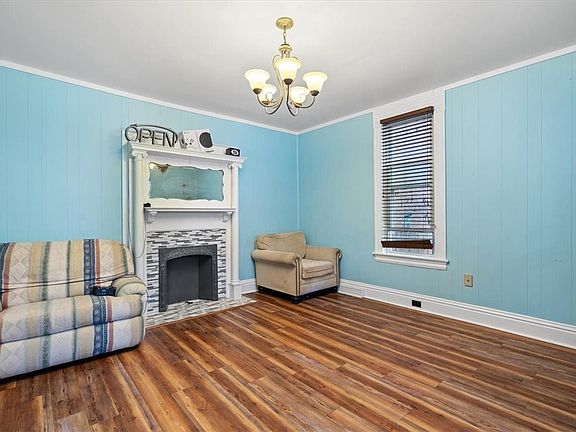 2-story residence is a perfect blend of comfort and charm. Covered porch beckons, offer a warm invitation into a home that exudes character. Charming entryway onto the laminate floors seamlessly guides you through the first level. Spacious LV area, adorned w/ a decorative fireplace, sets the tone. Oversized dining room, featuring another fireplace. The heart of the home lies in the generously sized, eat-in kitchen. Equipped with appliances, this culinary haven is where family meals and culinary creations come to life. Convenience meets style on the first floor with a laundry area. Venture upstairs to discover three well-appointed bedrooms, each offering a haven of comfort and tranquility. As you explore further, the allure of the large rear yard unfolds, a perfect canvas for outdoor gatherings, gardening, and creating cherished memories, w/ a fenced in yard. Off-street parking adds a practical touch, ensuring that your arrival home is always convenient.