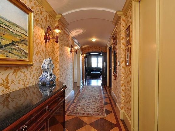 Sweeping river and city views! This gracious home has a flexible floor plan with entertaining in mind. A boutique co op residence of ten units, residents enjoy two parking spaces, live-in superintendent, professional mgmt., and concierge service. Direct elevator opens to a foyer with arched ceilings and harlequin inspired flooring. The wood paneled study has one of four fireplaces in the home and many built ins. The living room has rich mahogany walls with custom details, 3 directions of river views and bar. The fabric walled living room has wainscoting and a bow window. A cook's kitchen includes Subzero fridge, Bosch ovens, wine fridge, gas top cooking, a flower cutting sink, glass cabinets, and two dishwashers. Separate laundry room. The master suite has walk in closet and built ins as well as spa like bath with soaking tub and radiant flooring. Guest bedrooms have city view, ample closet space, and marble en suite baths. There is surround sound, central A/C, and storage space.