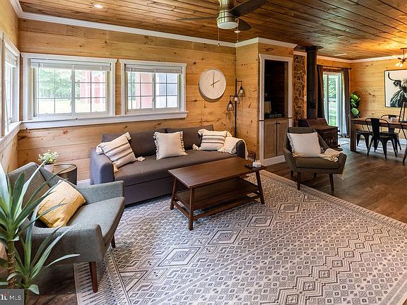 Very unique remodeled farm house. Everything has been been upgraded in the home....electric, plumbing, roof, paint, flooring. Kitchen has stainless appliances with butcher block counters. Tongue and grove pine walls in the living room along with a wood stove. Outside features include a hot tub, wrap around porch, a barn, and a camp fire ring. A swimming pool is on the property, but it was never used by sellers. The best part is that the home can come fully furnished! 5 acres of unrestricted land with a very nice view and close to paved roads.
