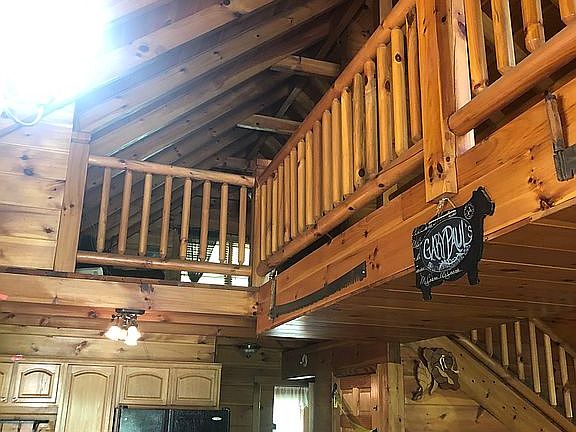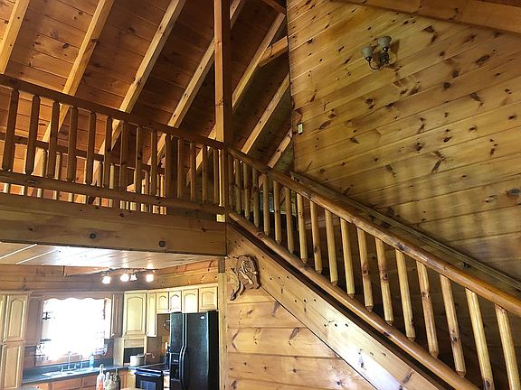 Beautiful log home 1536 sqft NEW CH/CA, on full basement 2 car drive under garage. Green metal roof. 2.3 acres. 2 outbuildings plus huge barn. Two water meters beautiful long range view of iron mountain. Short ride to food city. Mostly level n mowable. New flooring, new Carrier HVAC, new granite countertops