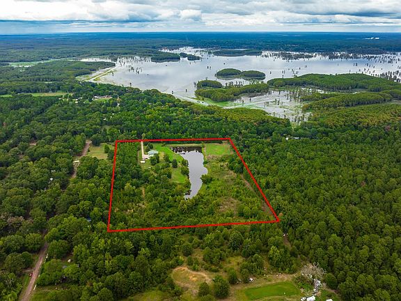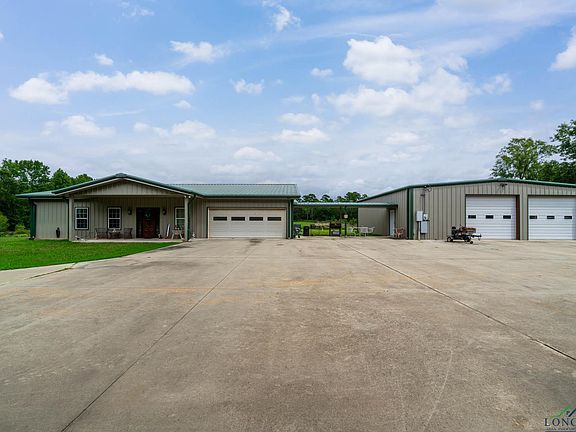 Come live on Big Lake Rd and fish in your own pond in the back yard! Across the road is boat ramp entry to put your boat in Caddo Lake! This home is a metal frame home and it sits on 25 acres! The home was custom built in 2009 with wonderful high ceilings and a large open living, dining and kitchen! This home has 3 bedrooms, 3 baths. There are 2 master suites with large walk-in closets! Both master bedrooms have rear door exits to the patio which overlooks the pond and pier! There is also a large utility room off the great kitchen and eating bar! The women will love the home and the men will love the warehouse which has a full bath and lots of room for parking boats, extra vehicles, etc. The home has a generator, a fish station, for cleaning your catch and a portable storage building.