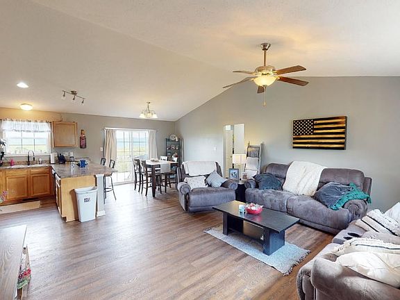 This home is located minutes out side of town with a beautiful mountain view! Make sure to check this home built in 2013 with 3 bed 2.5 baths. With new laminate flooring and those tall ceilings the ladies will love the open airy feel you get as soon as you walk in the door. Don't worry guys we didn't forget about you these is a full unfinished basement for all your man cave needs!