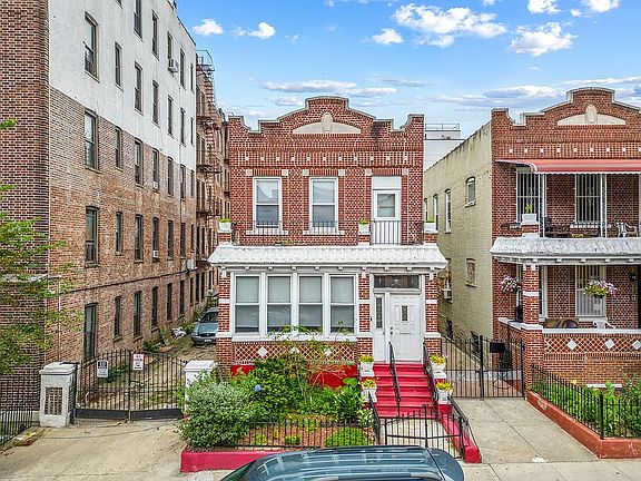 This Crown Heights Red-Brick Two Family home is freestanding, fully detached, and amazingly high-ceilinged. For the auto lover, an extra wide driveway that can park multiple cars. It is just off the Historic and picturesque Eastern Parkway, Brooklyn's premier thoroughfare. It has seven bedrooms, two full baths, and a full unfinished basement with windows and yard access. With a charming layout, there is room to spread out with nearly 2,600 square feet of living space over two floors, plus a full basement waiting to be finished. Erected in 1910, the charm of the period is evident in details still intact, including stained glass transoms, decorative panel molding, and once restored, beautiful glass French-paneled doors that separate living and dining spaces. Both units have windowed baths, large kitchens, rear garden-facing bedrooms, and access to outdoor spaces. The upstairs unit enjoys a private terrace overlooking the Parkway, and the lower level has access to the rear garden. Both apartments enjoy the front sunroom and private interior entrances. Bring an architect/contractor and discover how to make this home uniquely yours. Other amenities include the nearby community favorite, the 21-acre Lincoln Terrace Park, The Brooklyn Children's Museum, and Weeksville Heritage Center. Lot is 27 X 100, zoned R6.