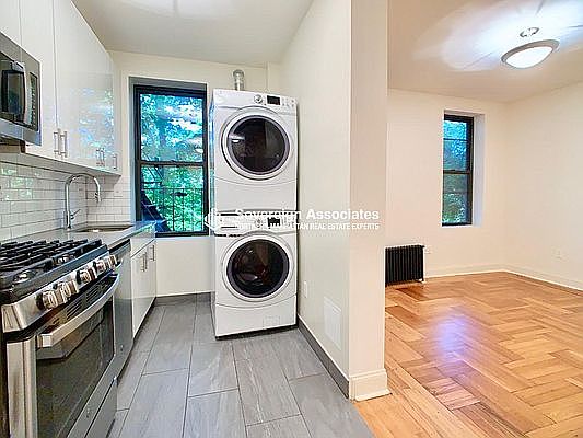 Seasonal river views 1br is just a short walk to Columbia Medical Center. This unit features in-unit laundry, a renovated open kitchen, great light, a marble bathroom & hardwood floors. Just across the street from PS 187 and the Fort Tryon Park just next door makes this convenient and fun. Come home to a well-kept Art Deco with laundry, a great live-in Superintendent, an elevator & pet friendly.