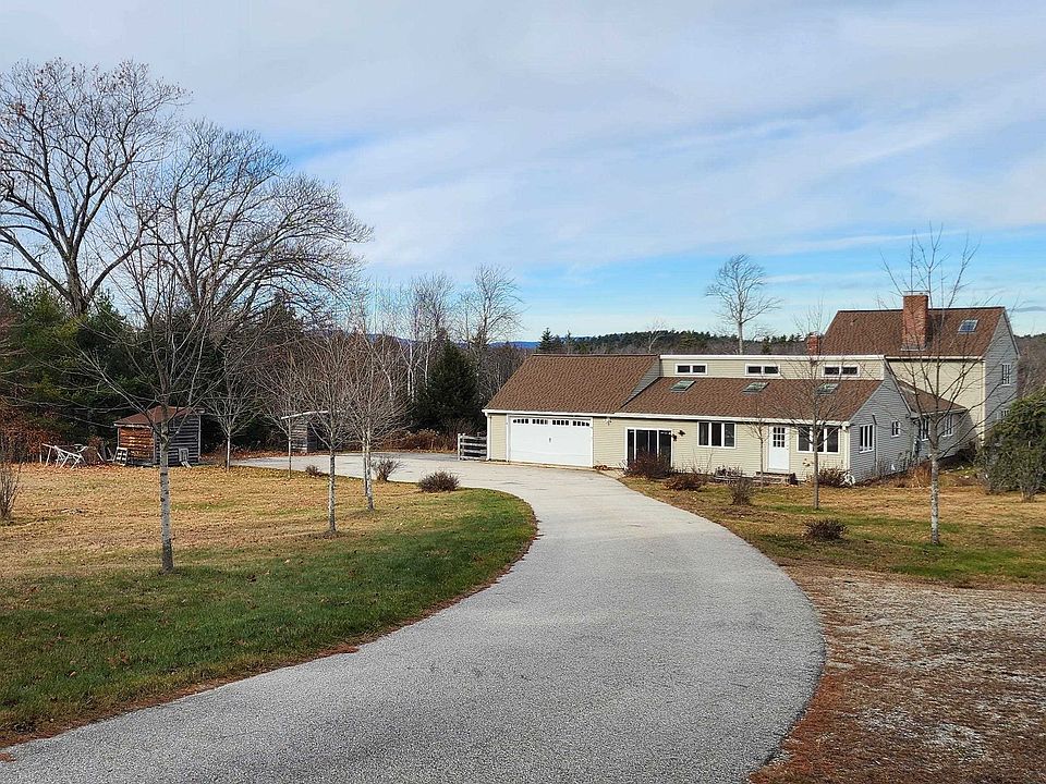 Secluded & Private, yet only 10 minutes to downtown Peterborough. Beautiful country setting with a mixture of field/pastures, woodlands, wetlands and a small pond. Spacious and Bright contemporary style home with 3 bedrooms and 2 full baths located on 10.81 acres. This home has many great features - vaulted ceilings, exposed beams, lots of closet/storage space, private second floor primary with walk in closet and large bathroom, spacious kitchen, 1st floor bedroom/den would make an ideal home office, deck, patio area, large pergola perfect for entertaining, workshop, an abundance of shelving in the basement, an additional drive-in garage under that is perfect for lawn equipment.