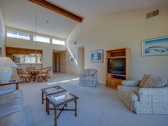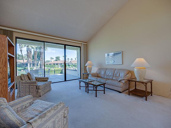 Huge price reduction now lowest pricing in Monterey Country Club, Closest to hole #5 on the South course, most popular two bedroom floor plan, this 20 Plan features fantastic golf course and chocolate mountain views as well as San Jacinto with the pool in walking distance from your patio. Monterey has 37 community pools and spas. The unit's rear patio has been extended this original unit is being sold by the first owner from new and has been impeccably maintained new hot water tank and newer updated AC etc. Monterey Country Club features 27 holes of championship golf, pickle ball, bocce ball, tennis, recently renovated fitness center and a full service club house with a busy calendar of social events and activities. Priced to sell turn key fully furnished. Or perfect for a remodel.