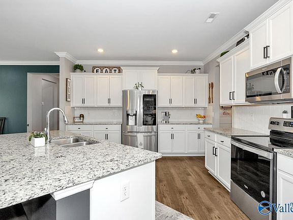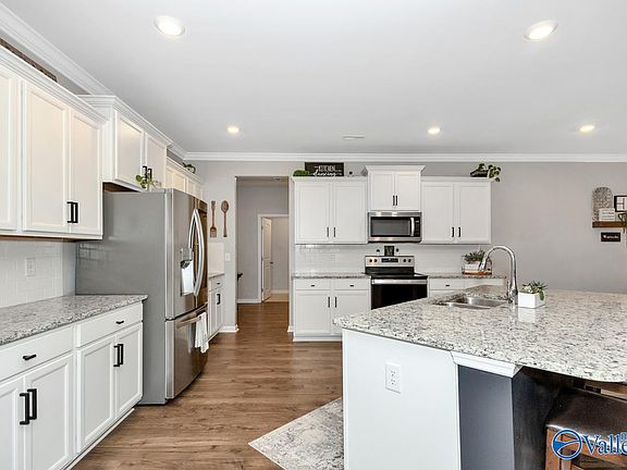 Better than new!! This upgraded dream home boasts incredible natural light & amenities including a large 3 car garage! Upon entering the home you will be wowed by the tall ceilings, beautiful crown molding & attractive luxury vinyl floors. The 4 large bedrooms and 3 well equipped bathrooms boast 2 private suites! The open concept chef's kitchen features gleaming granite countertops, upgraded cabinetry & subway style backsplash. The master retreat features large walk in closets, tile floors & double quartz vanities. The dreamy screened-in patio overlooks the flat yard, fully fenced by a new shadowbox fence. Fabulous Madison City schools are the cherry on top of this picture perfect home.