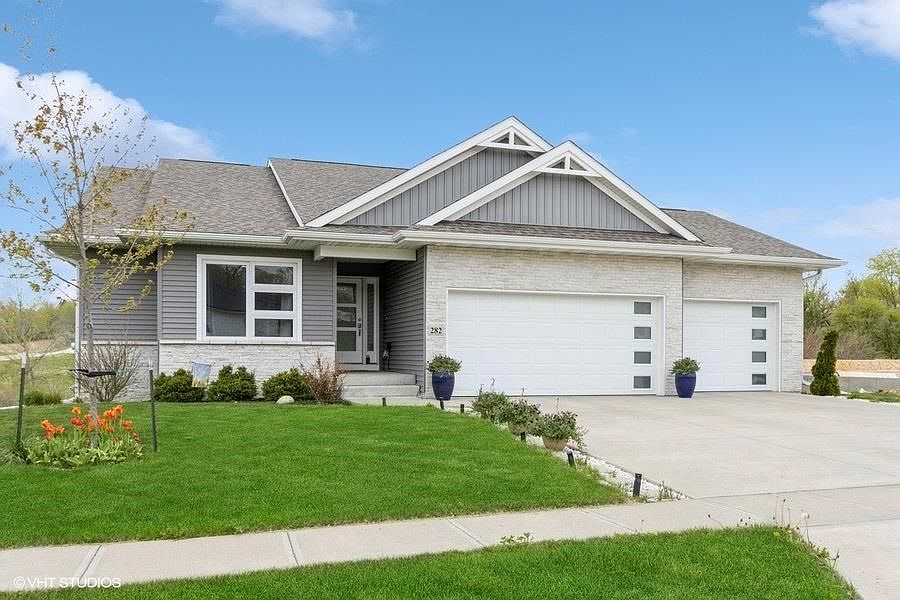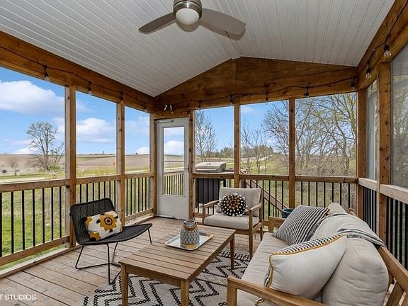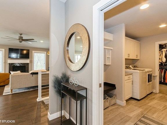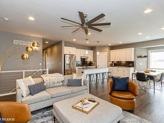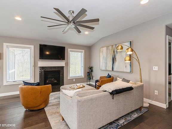 Modern, upscale east side walkout with excellent curb appeal. 5 bdrms, 3 baths and 2600 sqft of finished living space. Upgrades throughout this well maintained home with an open floor plan. Upgraded kitchen with white cabinetry, stainless appliances, granite counters, tile backsplash and walk in pantry. Whole house repainted in 2022, wood floors throughout main living areas, screened in porch and oversized patio. Large primary suite features bath with custom, double vanity and mirrors, subway tile backsplash, quartz counters and tile floors and shower with rain shower head. Walkout lower level with large family room, wet bar, 2 bdrms, bath & ample storage. Fenced in yard, washer/dryer stays, blinds and curtains stays, Blink system and Lennox IComfort smart thermostat.