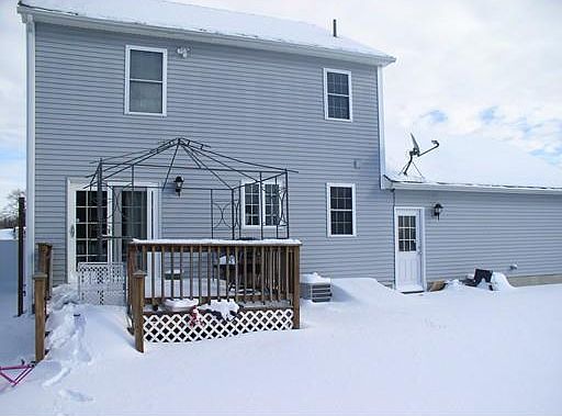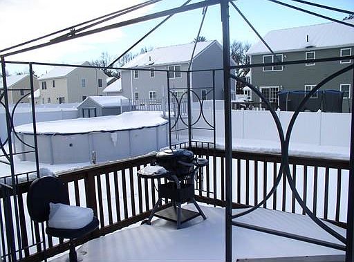 This is an exceptionally well kept newer home with all the fixings. Home is already alarmed. Central heat & AC. Slider leading to a large deck with an aluminum frame gazebo. Large above ground pool with aluminum deck and all equipment included. Storage Shed. Complete 6' white PVC fencing. Large two car garage with extra storage space. Entrance opens to a large fourier and spacious living room with hardwood flooring and a gas fired fireplace. Has a spacious kitchen opening up to the dining area. All kitchen appliances included. Half bath on first level. Second level has large bath with three good size bedrooms that have spacious closets. Basement has open space which leaves room to expand. Includes washer & dryer hookups and a walkout to the rear yard.