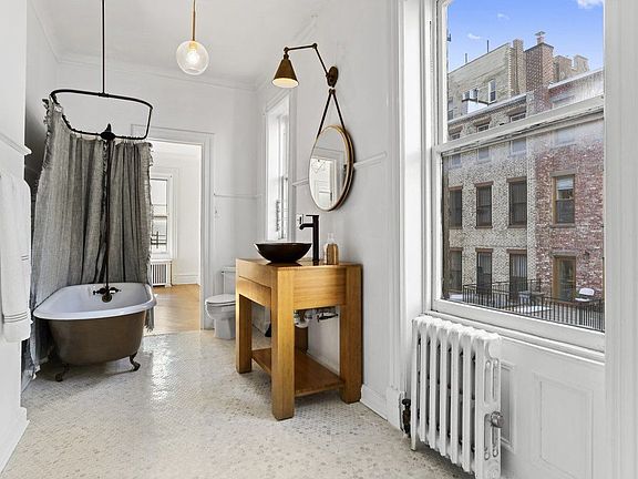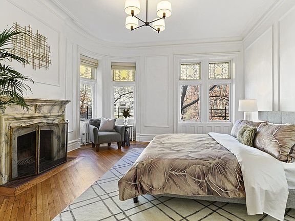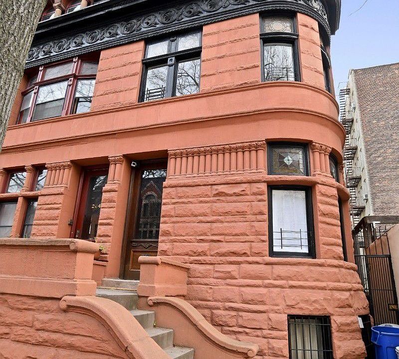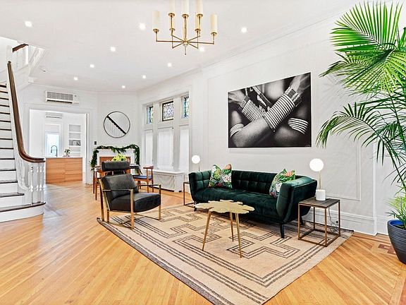 A Clinton Hill townhouse that is for sale. This distinguished brownstone, which has a facade that's ornately embellished with a Turret tower, was designed by renowned architect Montrose Morris. This lovely semi-detached, 4 story house has two apartments that have been combined as one, serving as a one family. There are stained glass windows throughout the home, 4 king sized bedrooms and 3.5 windowed bathrooms. The eat-in kitchen has been renovated with high end appliances, while the living room is ideal for dinner parties with your loved ones. There is a Jack and Jill master bath with double vanity sinks. If you're a hopeful romantic, you'll love the working fireplace in the master bedroom, and the claw foot tub in the 2nd bathroom. There are split air A/C and heating units throughout the house, a W/D and a garden that will add to your enjoyment for next summer. The garden apartment can be used as a den, an additional bedroom or an office. The building is 19' x 45' on a 19' x75' lot. The location is prime. It's in close proximity to several of Brooklyn's best restaurants, Fort Greene Park and Brooklyn Academy of Music. While the G train will have you in Midtown within 20 minutes, the B/Q/R/2/3/4/C/N trains are 15 minutes away.