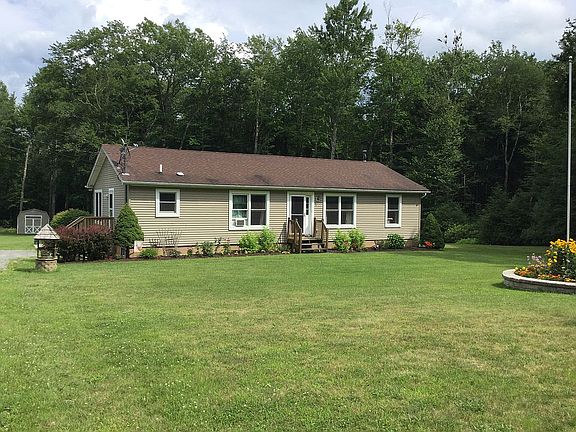 Surrounded by woods sits this private, level 1.4 acre meticulously maintained 3 bedroom, 2 full bath ranch home. Built in 2004 this home includes 2 sources of heat/hot water for efficiency which includes an outdoor wood boiler & oil/hot water baseboard heat. As you enter the side door it brings you into mud/laundry area. From there you step into a breakfast room that connects to the kitchen by a peninsula counter with stools for additional seating & a sliding door to a small deck that leads down to a concrete patio & gazebo surrounded by beautiful gardens. Kitchen has all stainless appliances, wood cabinets & 2 large windows over the sink that look out into the private backyard. Kitchen leads to the dining room with open concept to the living room. Master bedroom has a walk-in closet & private full bath. Home also has two additional bedrooms & a full guest bathroom. Full basement (not included in square footage) has poured concrete walls that have been sealed with white Dryloc & has footing & basement drains which go all the way to the back end of the property. Basement is partially finished, has a workshop area, exercise area & plenty of storage. Some upgrades include all new Andersen Renewal windows throughout the home including sliding door to patio, bamboo flooring & a brand new (2020) stainless refrigerator. Large carport, currently being used for wood storage, also has electrical service. Additionally there is a barn style shed for extra outside storage, 200 AMP service and a Generac 16kW standby generator. Relax & unwind behind this home under a covered gazebo on a concrete patio that is surrounded by lovely flower gardens. In the front of the home there are more flower gardens, grasses & willow trees which add to the privacy. Spacious driveway has plenty of room for parking, low maintenance vinyl siding, large yard for entertaining/barbecuing & for kids & pets to run & play. Home has had one owner & was built with quality in mind & for easy low maintenance living. This home has been maintained beautifully & ready for new family to just move right in.