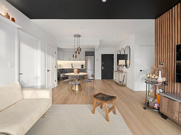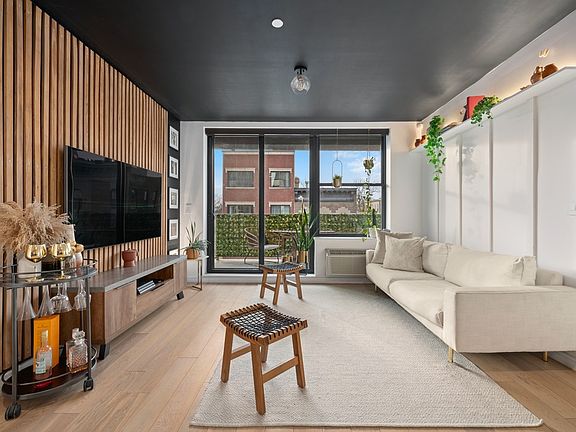 Available June 1st! Welcome to 282 Eldert, a boutique, newly constructed condominium in the heart of Bushwick, Brooklyn. This one-of-a-kind elevator building offers 17 thoughtfully designed, luxurious residences. Enter into this stunning 2-bedroom, 2-bathroom condo spanning 947 square feet, where breathtaking panoramic views of Brooklyn's rooftops and the Manhattan skyline await. Bathed in natural light from floor-to-ceiling windows, this home showcases high-end finishes throughout. The open-concept kitchen is a chef's dream, featuring sleek Carrara Quartz countertops, a classic subway tile backsplash, self-closing drawers, and a premium Blomberg & Bertazzoni appliance package. The living space extends to a private terrace, perfect for morning coffee or evening cocktails. Designed for comfort and convenience, the home boasts a split-bedroom layout, two luxurious bathroomsone with a soaking tub and the other with a walk-in showerplus a vented washer/dryer, central AC, and heating. This smart home is equipped with an Alexa and Ring system, dimmable lighting fixtures, and electric shades for added ease. Small pets (cats and dogs) are welcome on a case-by-case basis. Building amenities include a gym, health club, and a stunning common roof deck with sweeping city views. Additional perks include a video intercom system, bike storage, and an elevator. Located just moments from the M and L trains, 282 Eldert offers seamless access to all of Brooklyn and Manhattan. Don't miss this incredible opportunity to call this beautifully crafted condo your new home!