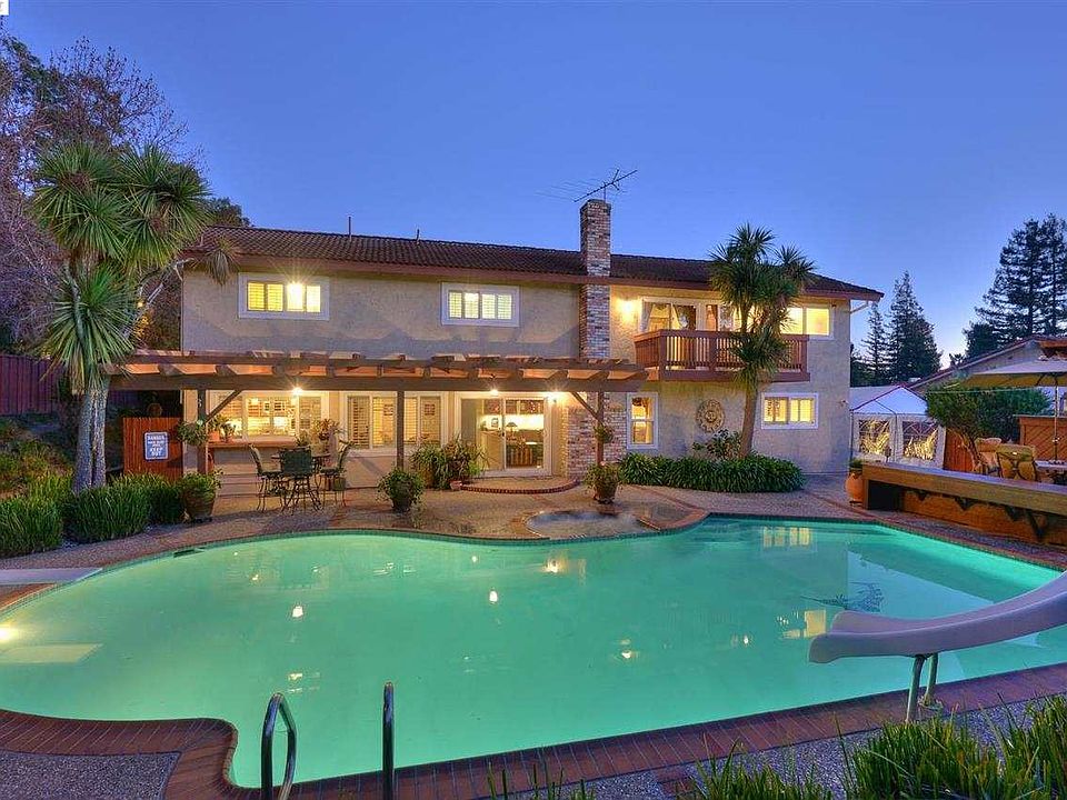This two story, stunning home with many designer touches throughout situated on a large corner lot, featuring 3,373 square feet of elegant living space offering 5 bedrooms and 3 full bathrooms. From an expansive private driveway lined with lush lawn that can accommodate parking for a large group, this stunning property has plenty of room for entertaining. Backyard oasis offers a sparking pool and spa with an incredible view of Eucalyptus Grove. Side access for RV or Boat. This home is a must see Gourmet Kitchen recently remodeled eat-in kitchen, custom solid cherry wood cabinets and granite countertops. Elkay extra deep stainless steel sink, Frigidaire, gallery series stainless steel appliances, double ovens, built in microwave, fi¬ngerprint resistant refrigerator, 36" gas black glass cook top with Viking exhaust fan large food pantry. Large master bedroom suite with recessed lighting, vaulted ceilings and gym room with wood floors. Large his and hers walk in closets, sliding glass doors leading out to balcony. Master bathroom offers double sinks, granite counters and custom solid wood cabinetry, jacuzzi tub with mood lighting, granite shower with duel shower heads and private toilet area. Further amenities separate heating and A/C, upstairs and down. New double pain windows. Plantation shutters throughout. Security alarm with glass break detection system. Seven security cameras. Laundry room includes Whirlpool double stack washer/dryer, spacious granite counter, folding with custom solid wood cabinets and built-in ironing board. The home is a dream come true with modern updates inside and out. Just a short stroll to shopping centers, restaurants, with award winning Mission Schools.