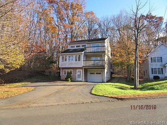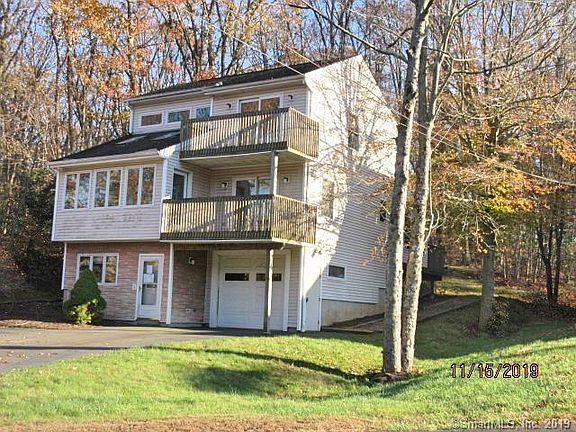 Bright open floor plan Contemp ready for your personal touches! Modern kitchen with breakfast bar. Gas fired stove in living area. Sliders to decks from bedrooms, 2 full baths, master suite. Ground level 3rd bedroom with rough in bath potential. Three season enclosed porch leading out to back deck. Private wooded lot. Great potential! Offered as is.