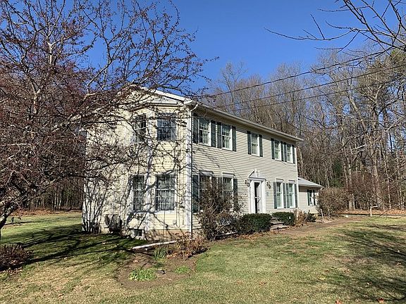 Sitting back off the road, with its long curved driveway, this house looks prominent and inviting. 1992 Colonial with 3 bedrooms and 2.5 bathrooms has the amenities needed for the buyer of today. Large master bedroom on the southern side of the house with walk in closet and private bathroom. Well deserved... Two more good size bedrooms on second floor with common bath and a large laundry closet for second floor convenience. Smart... Open Foyer from front door accesses living room, dining room and second floor hallway. Open Kitchen concept to living room that has back yard access. Outside time... Half bath on the first floor near garage access. Dining room and Sitting/Family room round off the first floor for entertainment and personal enjoyment. The basement is insulated and walls sheet-rocked for more usable space. And the back yard completes this house abutting woods that are protected from development. Roof less than 5 years. Access is North of the Pedestrian Bridge.