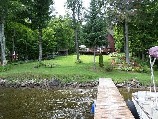ContemporaryAdirondack Home on Chateaugay Lake Contemporary Adirondack home sitting on 155 waterfront property with sweeping deck, landscaped gardens and private hot tub. This home has all the modern features: special lighting, radiant heat, granite counter tops, fireplace, chef?s kitchen, ceramic tile and 5 large bedrooms.