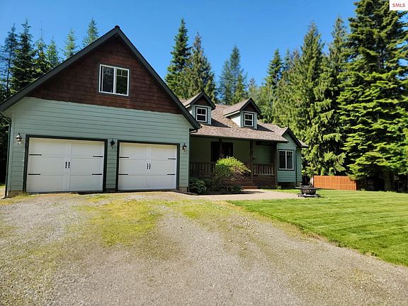 Take in the beauty of this beautiful setting home, abounds with a multitude of trees to live in Paradise Valley of Bonners Ferry Idaho. Situated on 4.60 acres nestled in the trees for your own privacy. 2800 SqFt 5 bd 3 ba open floor plan. W/ two master suites. The master suite on the main floor has a beautiful clawfoot tub, double head shower. The 2nd master suite is upstairs,2 car lg size garage. Beautiful Hickory hardwood flooring throughout the living rm and into the kitchen. Enjoy the French doors that ALL OPEN up to the back deck for extra space for family gatherings or to just enjoy open fresh crisp air of Northern Idaho with the fireplace to enjoy, as you look out. A full surround sound inside and out built in with TV that is staying to enjoy as well. Take in the beauty from all! There is plenty of room to build a shop on this property if needed. Also, a chicken coop or dog pen. NO CC&R'S! Welcome home to Northern Idaho.