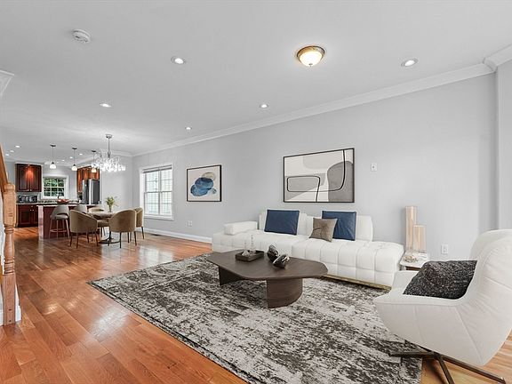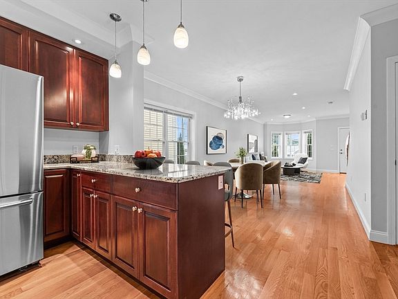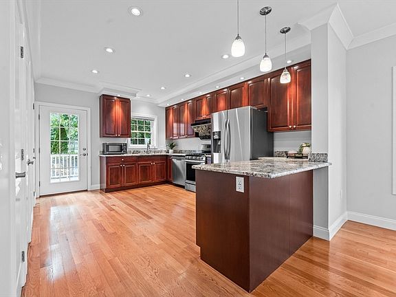 Like a brand new, nestled in downtown's heart, this chic townhouse epitomizes modern living. With its convenient location, a step out the door will bring you to all amenities - shopping, supermarkets, and restaurants. Additionally, it is just around the corner from top-rated elementary, middle, and high schools, near the commuter rail station and easy access to highways. Inside, the open-concept layout seamlessly blends the living, dining, and kitchen areas together, perfect for entertaining. Hardwood floors throughout, granite countertops, and cherry kitchen cabinets add a touch of luxury. Two spacious master bedrooms, each with an en suite bathroom, offer privacy and comfort. A well-appointed third bedroom and guest bathroom, with laundry, enhance the layout. The finished basement and private fenced deck provide additional space for entertainment anytime of the year. With its prime location and upscale features, this young townhouse embodies sophistication and convenience.