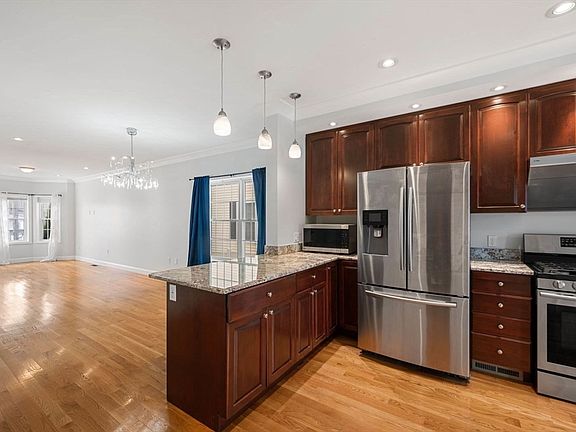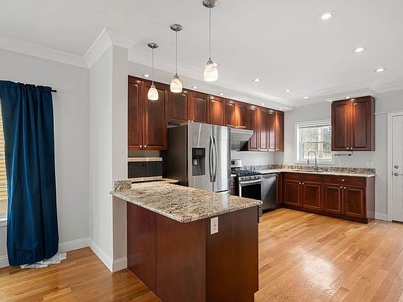 Like new and nestled in the heart of downtown, this stylish, spacious townhouse boasts an inviting open floor plan, perfect for modern living. The eat-in kitchen features cherry cabinets, granite countertops, and SS appliances, seamlessly connecting to the dining and living areas. With 9-foot ceilings, crown moldings, and hardwood floors throughout, elegance is evident in every detail. The second floor offers two generously sized master bedrooms, each with an en suite bathroom for ultimate privacy and comfort. On the third floor, you’ll find a third bedroom with its own full bath. The finished basement provides additional versatile space, perfect for a home office, gym, or media room. Enjoy year-round relaxation on the private fenced deck. Step out your door to experience the ultimate convenience of nearby shopping, supermarkets and restaurants. Top-rated elementary, middle, and high schools are just around the corner, with the commuter rail station and major highways easily accessible