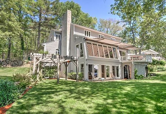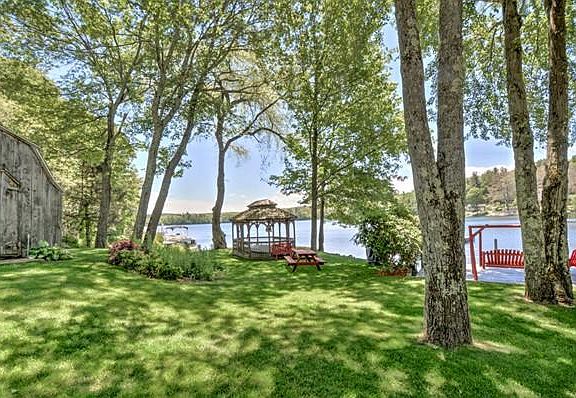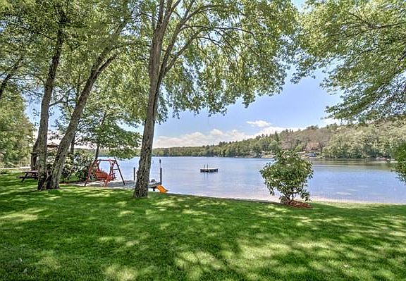 Look no further for your quintessential Lakefront home on private Stevens Pond.....a full recreational lake. Over 180 feet of lakefrontage....level lot...open first floor overlooking lower level family room. New 4 bedroom Presby septic system. Possibility of adding a fourth bedroom. Oversized two car garage with room above for many possibilities....gazebo...outdoor shower....shed for water toys....sun ALL DAY!