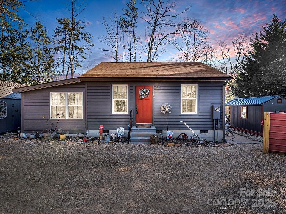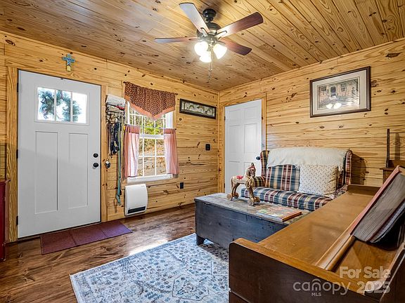 Beautiful working farm perfect for homesteading. Meander up the two mile dirt road to your home with the perfect setup tucked peacefully behind the house in a private setting. The home and property have plenty of room to expand if wanted. From the 2 stall horse barn, run-in barn, streams, natural spring fed pond, two chicken coops perennial herb garden and blueberry bushes everything is in place to start your dream! The large 12 x 36 deck and fire pit are ready for entertaining. The cozy outdoor shed is perfect for afternoon naps or reading your favorite book. Enjoy walking your almost 6 acres with a foot bridge already built across the stream. Located approximately 5 miles from Lake Lure but still off the beaten path. The interior features all wood walls and flooring for a cozy cabin feel. Call for a showing and start living the rural lifestyle! RV pole in place.