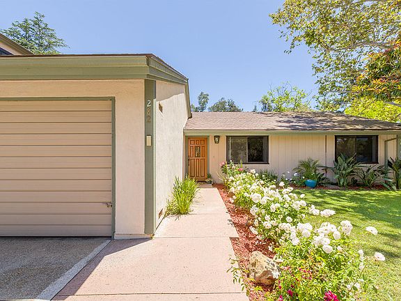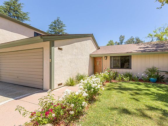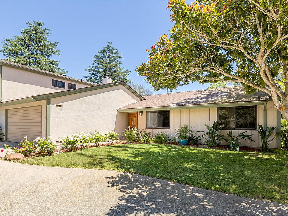 Tranquil and Spacious this town home is one of eight homes sitting on over 2 acres of rolling lawns with mature trees. This feels more like a family home than a condominium. It is move in ready with a recently updated kitchen and baths. Wood floors and fresh carpet throughout. The open living room and dining room have high ceilings and an inviting gas fireplace. Off the living room is an inviting patio and several fruit trees. Large closets and plantation shutters make the spacious bedrooms ideal and inviting. The attached 2 car garage has additional storage and hook ups for laundry. This special home is truly and oasis in the city. Just a few blocks to nearby upper State Street and the many conveniences there. Excellent nearby schools.