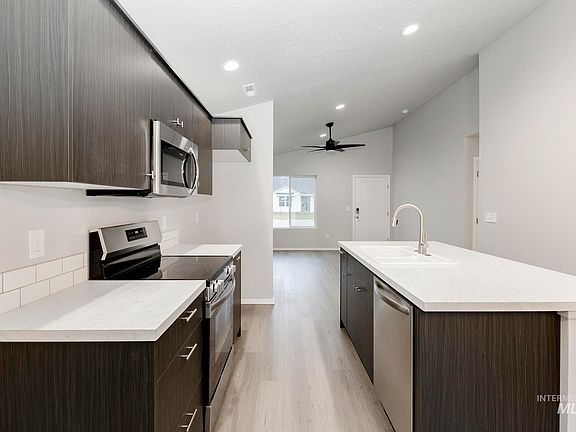 Embrace the comforts of a brand new home in Kuna, Idaho. The Stella 1207 is adorable and bursting with charm! This thoughtful floor plan flows seamlessly through the home to deliver a cozy living experience. Three bedrooms, all situated on one side of the home, are designed to provide a secluded get-away to everyone. The centrally located living room, kitchen, and dining room are the heart of the home for lounging or entertaining. The primary suite provides an en suite bathroom and large closet. Enjoy easy access to the back patio from the dining room and make the most of the pleasant Idaho weather. Photos are of the actual home!