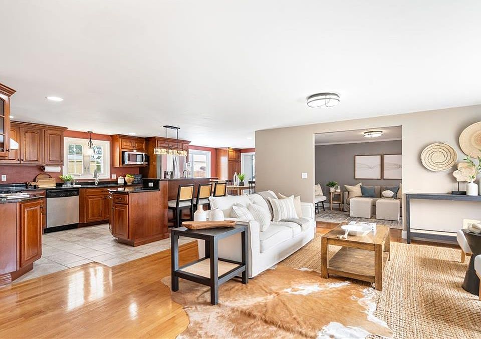 Nestled on a picturesque lot, this sophisticated three bedroom, three bath sprawling ranch-style home boasts a bright and sunny open floor plan with gleaming hardwoods. A spacious eat-in kitchen with granite counter tops, stainless steel appliances and a large center island, seamlessly flows into a generous living room and an inviting den. Truly the heart of this lovely home! Sliding glass doors from the dining area, provides convenient access to a spacious deck which overlooks the home's expansive and tranquil yard. Perfect for indoor/outdoor entertaining. This home boasts a thoughtful floor plan offering an unparalleled level of comfort and convenience. The stunning primary suite is a perfect retreat, featuring soaring ceilings with an airy and spacious feel. The en-suite bathroom features a double vanity with a jacuzzi tub as well as a large walk in closet. Just across the hall are two additional well-appointed bedrooms with ample closet space and an additional full bath. An abundance of additional space can be found in this home’s lower level, including separate access to the back yard, a laundry room and plenty of storage options. Special features of this home include central air, replacement windows, a newer roof, updated mechanicals, vinyl siding and a large attached 2 car garage as well as a spacious shed. Enjoy the changing New England seasons from the comfort of this home's charming deck and lovely fenced-in yard. Make 282 New Hampshire Avenue your new home