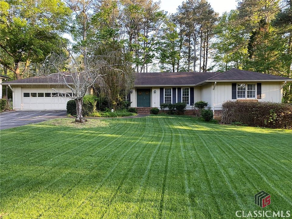Large 3 bedroom ranch in a highly sought-out area of Roswell! This home sits on a large lot with park-like landscaping on a quiet street. Open living and kitchen spaces have new pine hardwoods, charming paneling and a brick fireplace. The generously sized master bedroom includes two walk-in closets and a large vanity room. Laundry and mud rooms lead to the two car garage with additional storage closet. The back door opens to a beautiful screened porch with views of the private level backyard, complete with mature trees and a small fire pit. Lots of updates have been made, including new light fixtures throughout the home, new flooring in living and bathroom vanity areas, removal of popcorn ceilings, fresh paint, and recently replaced HVAC and tankless water heater. The roof and shingles are also in excellent condition.