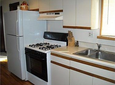 Move right in! Skylight, custom wood blinds and brand new carpeting in living room. Cozy kitchen with all newer appliances and wall mounted table. Master bedroom boasts beautiful french doors at entry, corner gas fireplace, hardwood floors, multiple built-ins, large closet and exposed beams. Good sized second bedroom with ample closet space. Bathroom is updated with ceramic tile floor, new tub surround, toilet, sink and fixtures. Pocket door to mudroom off kitchen leads to rear deck, fenced-in yard w/new shed.