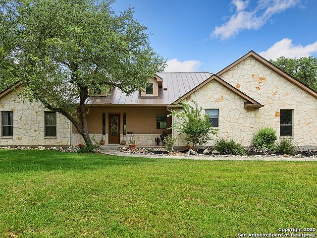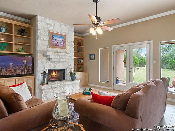 Immaculate, Custom, Level, One-Story Situated on 3.13 Acres with Mature Oaks in Private, Gated, Waterstone. Unique in Size and Rich in Quality and Ample Bedrooms and Baths. Over-Sized Master Bedroom and Closet with Sitting Area. Spacious Kitchen with Custom Cabinets, Granite Countertops, Tile Backsplash. High Ceilings, Open Floor Plan, Closets Galore! Impressive Rock Fireplace and Built-in Shelving in Living Room. Extended Rock Patio Overlooking Expansive Level Lot with Plenty of Room for Pool. Relax on Wooden Lawn Swing and Watch the Wild Life. Enjoy the two Waterstone Neighborhood Parks on the Guadalupe River!