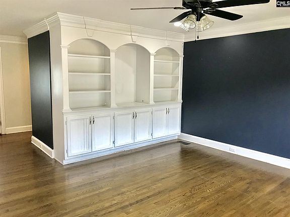 - Ceiling Fan(s), Recessed Lighting, Floors-Hardwood, Molding, Bookcase