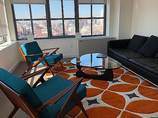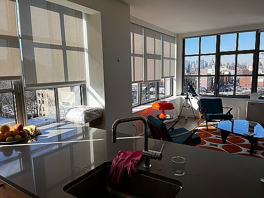 Sun filled South West furnished corner unit, in Williamsburg Brooklyn. 1 Block from March Street Subway (MJZ) 1 stop from Manhattan. All rooms face South or West or both South and West. Well furnished, Thuma Bedroom set, 2 Poltrona Frau leather couches and midcentury modern accents. 2nd bedroom used a a TV room/office and there is a desk in the bedroom. Single person or couple only. NO pets at all no exceptions. One month rent damage deposit. Minimum rental period 3 months - Max 7 months. Seventh month free. This is a sublet allowed in out lease , building manager will run credit check and collect rent and utilities (Electric only). WiFI included Fios with 65inch TV in TV/Office room (2nd bedroom) and large large screen Monitor at Desk in Bedroom. Parking available. Smoking allowed:No