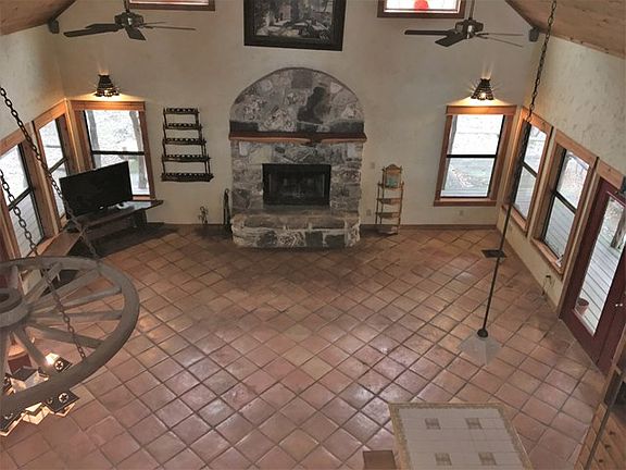 Secluded 20 acre tract with custom built 3 bdrm, 2 bath home. Great room has cathedral ceiling. lg rock fireplace and open kitchen with breakfast bar. 2 bdrms and 2 full baths on main level. Loft is the third bedroom with bath and closet. Garage has been converted to additional living space that can be adapted to buyer's needs; office, workout room or hobby rooms.Home is surrounding by trees and nature, very quiet and secluded. Decks on three sides of home to enjoy outdoors. Workshop and additional out building for projects. Concrete water storage tank.