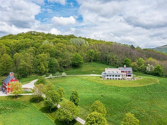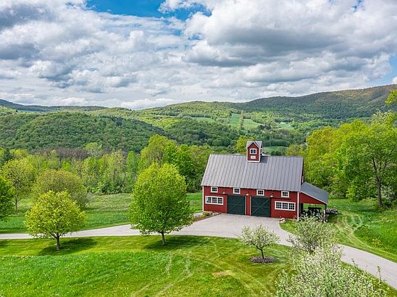On the market for the first time, this pristine 2009 estate situated on 16.4 acres offers some of the most breathtaking views in all of Vermont. As you head up the paved driveway, you'll pass the swimming pond and a large, level field until your eyes rest on the stunning farmhouse sitting at the peak of the hill. A stone's throw away sits a separate, versatile 3-level barn with room for up to 4 vehicles, recreation vehicles, storage, a gym, and a workshop. The bottom floor could be converted to stalls for equestrian use. Enter the house via the marble steps and store your gear in the well-appointed mudroom. The heart of this 5-bedroom luxury home is the renovated kitchen with Danby Marble, high-end appliances including Viking, Bosch, and Sub-Zero, refrigerated drawers, and a grand kitchen island. You may choose to lounge by a wood-burning fireplace in one of the 2 living rooms, the expansive finished basement, or the 800-square-foot attached barn with a bar and media area, ideal for watching movies or playing games. This house offers conveniences such as central AC, radiant heat, a steam shower, and a wine cellar. You'll find thoughtful details, like authentic barn doors, wooden beams, and unique light fixtures. Enjoy the views from the covered porch, screened-in porch, or the large patio, complete with a built-in hot tub and outdoor shower. Set on a private lot just 8 minutes from Dorset Green, this home offers the perfect blend of luxury, comfort, and convenience.