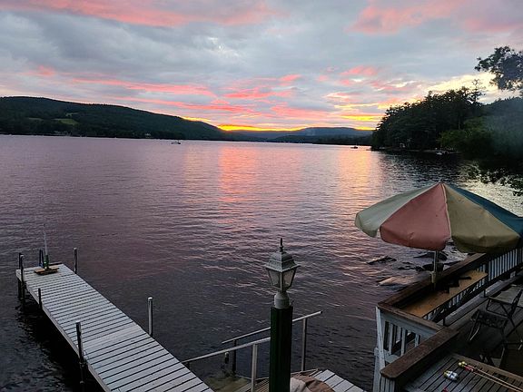 Possibly one of the most spectacular locations on Mascoma Lake you'll ever find. The "Lovett Cottage" has not been offered for sale since 1971 and boast direct Southwesterly exposure with 125 feet of private lake frontage. The original cottage built circa 1940 then remodeled and expanded in 2005 with a second floor addition which included a new kitchen, dining room, living room and bedroom/balcony. The house along with an extensive deck and dock system is grandfathered into is current location making it extremely unique and a rare find that will most certainly never be found again. The deck and dock system feel almost like they are vaulted out over the lake. The privacy here is amazing, imagine sitting by the shore on some quiet summer evening, with your feet in the water, sipping on a cool drink, listening to the waves gently slapping the rocky shore line. Nothing else to do but watch the sun slowly setting behind Shaker Mountain while your children or grandchildren are at play. The crackle of the firepit as tales from the past are being spun, and then your the grandchild runs over and whacks you in the face with a sun fish. Look what we caught Grampa! This is not a house, it's a lifetime of memories that we are selling, make them yours, call for a private showing today, you'll be glad you did.