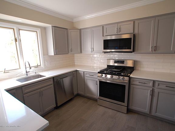 Beautifully remodeled first floor apartment in a Two Family Home. New kitchen with gorgeous Quartz counter tops and tiled backsplash, stainless appliances (new stainless steel counter depth refrigerator coming soon). New bathrooms, crown molding & new light fixtures throughout. Refinished hardwood floors in living room, dining room & bedrooms. New ceramic tile floors in kitchen and baths. Spacious master bedroom with walk-in closet and half bath. Large basement with washer/dryer and plenty of storage space. Very well maintained property!! Off street parking for two vehicles in rear of house. Great location, minutes from Shops and Restaurants. Won't Last, Good Credit Required! Pets considered on a case by case basis.