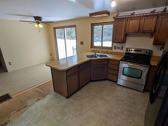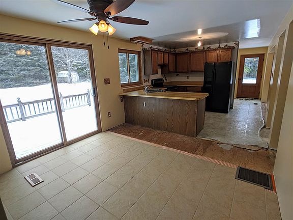 Country living...close to town! This three bedroom, one & a half bath ranch style home sits on almost 7 acres near Sunset Lake. Set back nicely from the road for privacy and play room in the front or back yards. All bedrooms, living room, dining room and the full bath have been redone with flooring, trim and paint...beautiful hardwood floors adorn each bedroom and porcelain tile laid in the other rooms with more than enough tile on hand to complete the kitchen and half bath flooring areas. With very little effort you can finish up the remodel of this well maintained home. Updated windows throughout provide efficiency and wonderful natural lighting. Downstairs is ready for your finishing touches in a large family room with a spot all set to install a woodstove. The drive-under garage sports a space as the laundry are and is neat, clean, insulated, heated and could be created into a great rec room. Outside you'll find a 12' x 40' deck for relaxing and entertaining in the backyard, a 20' x 36' detached insulated/heated garage with power as well as a well done dog kennel for your fur-babies. House is solely heated with an outdoor wood furnace and comes with a 2+ year supply of seasoned hardwood to help you start living without a heating bill. Should you decide, with little expense you could add a gas fired forced-air furnace inside as all duct work is in place. Seller is willing to leave all flat-screen televisions in the bedrooms and living room! An additional 13 acres is available to give you almost 20 acres just 5 minutes from town. Located just two miles from Sunset Lake beach and boat launch and close to the ATV/Snowmobile trails. Schedule your appointment and make plans to move to the country!