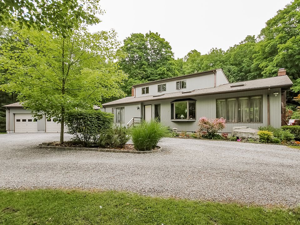 The pride of ownership is reflected inside and out of this lovely home. FIRST time on market. Beautifully sited on 3+ acres bucolic private property, specimen trees and lovely gardens. Bright, spacious floor plan offers a great flow. 1st floor- expansive living room with soaring - wood beamed ceilings, river rock fire place and gleaming hardwood flooring. Formal dining room - skylight and bay window. Completely renovated eat in kitchen with granite countertops leading into 3 season room (in rear of house) beautiful view of pond and gardens. Oversized MBR suite. Wrap around deck. Full bath off foyer, large panty closet. Den/office room (could be used as 4th BR if needed), Finished, walkout mudroom with work area, washer & dryer. Separate work shop. Must see to truly appreciate this meticulous home. Convenient computers location 3 miles to Metro North, I84/684.