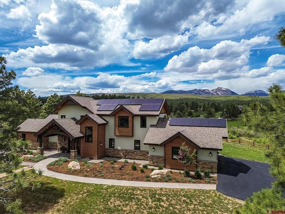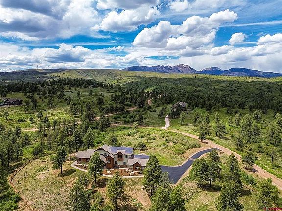 Welcome to this turnkey mountain living retreat, constructed by award winning Mantell-Hecathorn Builders. Nestled on 36.5 acres at 7800 feet elevation with 360-degree La Plata Mountain views, it is surrounded by 100's of ponderosa pines and abundant wildlife at Durango Ridge Ranch. This mountain craftsman style home is just 11 miles west of beautiful and historic Durango, is less than 5 years old, and has been meticulously maintained both inside and out. It is 3,233 SF, has 4 bedrooms, 2.5 baths, a 2.5 car garage, and front and rear covered stone patios for enjoying meals and relaxing by the gas fire pit. Chefs will appreciate the Memphis Pro pellet grill outside, and the indoor kitchen includes a high-end BlueStar 36" 6-burner gas cooktop with griddle and range hood, and a BlueStar custom color double wall oven with French doors. A Thermador refrigerator, freezer, and dishwasher (all covered in custom hickory panels) completes this beautiful kitchen. The walk-in pantry and bar area make entertaining a pleasure. Maple hardwood floors grace the interior and are complemented by the custom Amish-built knotty alder, hickory, and mahogany cabinets and doors. The primary suite is on the main floor and looks directly at the mountains, with two walk-in closets, double vanity, heated tile floor, a whirlpool bath, and walk-in shower. Just off the kitchen and garage there is an extra large laundry/mudroom with a tiled dog wash station, no muddy paws here! Three more bedrooms are located upstairs, along with an office area with beautiful views to the south for working from home, and another large bathroom with a double vanity, whirlpool bath, and walk-in shower. The asphalt driveway was just freshly sealcoated. There is an irrigation system to support the extensively landscaped grounds. A log fence surrounds the perimeter of the home, and there is a dog run adjacent to the garage. One of the many things that distinguishes this beautiful home from others is the thoughtful energy-efficiency features that were designed into the home, which generate total net energy costs (electricity + propane) of less than $600/year! These features include a large south-facing solar system, triple-pane windows, and an abundance of insulation. In-floor radiant heating makes the home warm and comfortable in the winter, along with the stone-covered gas fireplace in the living room. The large garage has an EV charging station, extensive shelving for storage, a work bench, and an extra refrigerator/freezer. Other advanced technologies include a monitored Honeywell security system, a Nest exterior camera system on all four sides of the house, and Nest programmable thermostats. DISH TV and Visionary internet service are excellent. You can hike and snowshoe right out your front door, but you'll also want to take advantage of all the recreational activities SW Colorado is so well known for. You are minutes to over 3000 acres of State of Colorado land and the Perins Peak State Wildlife area. La Plata Canyon is just a few miles west on HWY 160 with access to the National Forest. Hesperus Ski area, Purgatory, and Telluride are all within striking distance. Durango Ridge Ranch is a gated subdivision with 360 degree views and only 34 homesites, each with a minimum of 35 acres. The roads are in wonderful condition, and well maintained all year. The subdivision enjoys very low property taxes due to its agricultural status, as there is a small herd of cattle during the summer months. This is a Firewise community. This home makes a lovely place to live full time, or enjoy it as a second home and family retreat. Furnishings are negotiable. Call today for more information on this fantastic home.