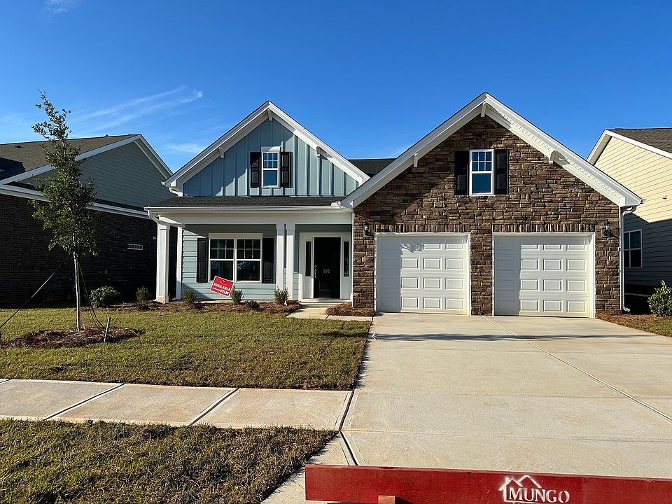 This Fairchild plan is a one-story, Craftsman-style three bedroom, two bath home. The kitchen boasts upgraded glacier gray cabinets, ceramic tile backsplash, a large peninsula with quartz countertops, cooktop, wall oven/microwave and hood over cooktop. The kitchen is open to the large family room featuring a corner fireplace, vaulted ceilings, and there is also an arched pass-through leading to the formal dining room, making it perfect for entertaining. The primary bedroom has access to the large screened-in porch that overlooks patio and fenced backyard. The secondary bedrooms share a full bath and are adjacent to the laundry room.